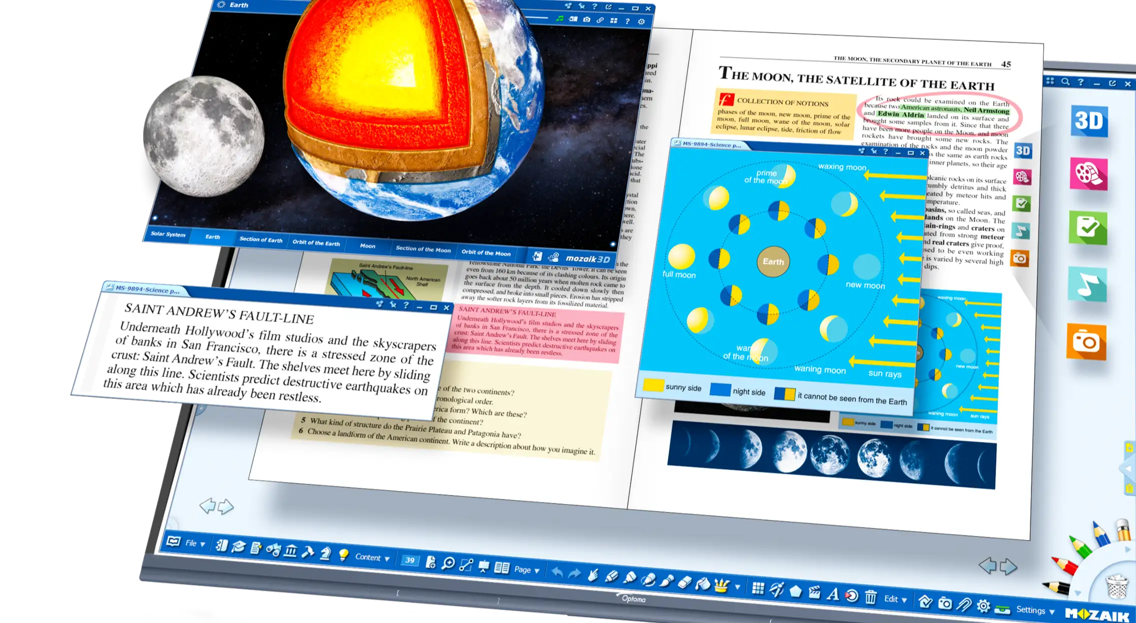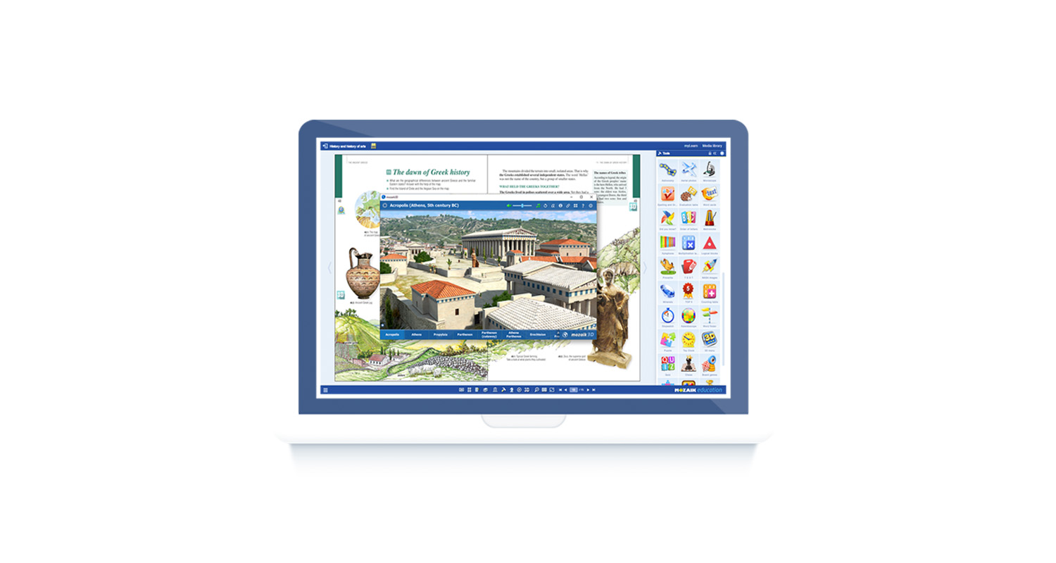 Dijital ders kitapları, hem sınıf sunumu hem de evde öğrenme için kullanılabilir. mozaBook'ta, mozaBook uygulamasında, çevrimiçi olarak veya mozaWeb üzerinden bir tarayıcıda açılabilir. Moziak, web mağazasında birçok dijital kitap sunmakta, ancak kullanıcılar kendi etkileşimli kitaplarını kolayca da oluşturabilirler.
