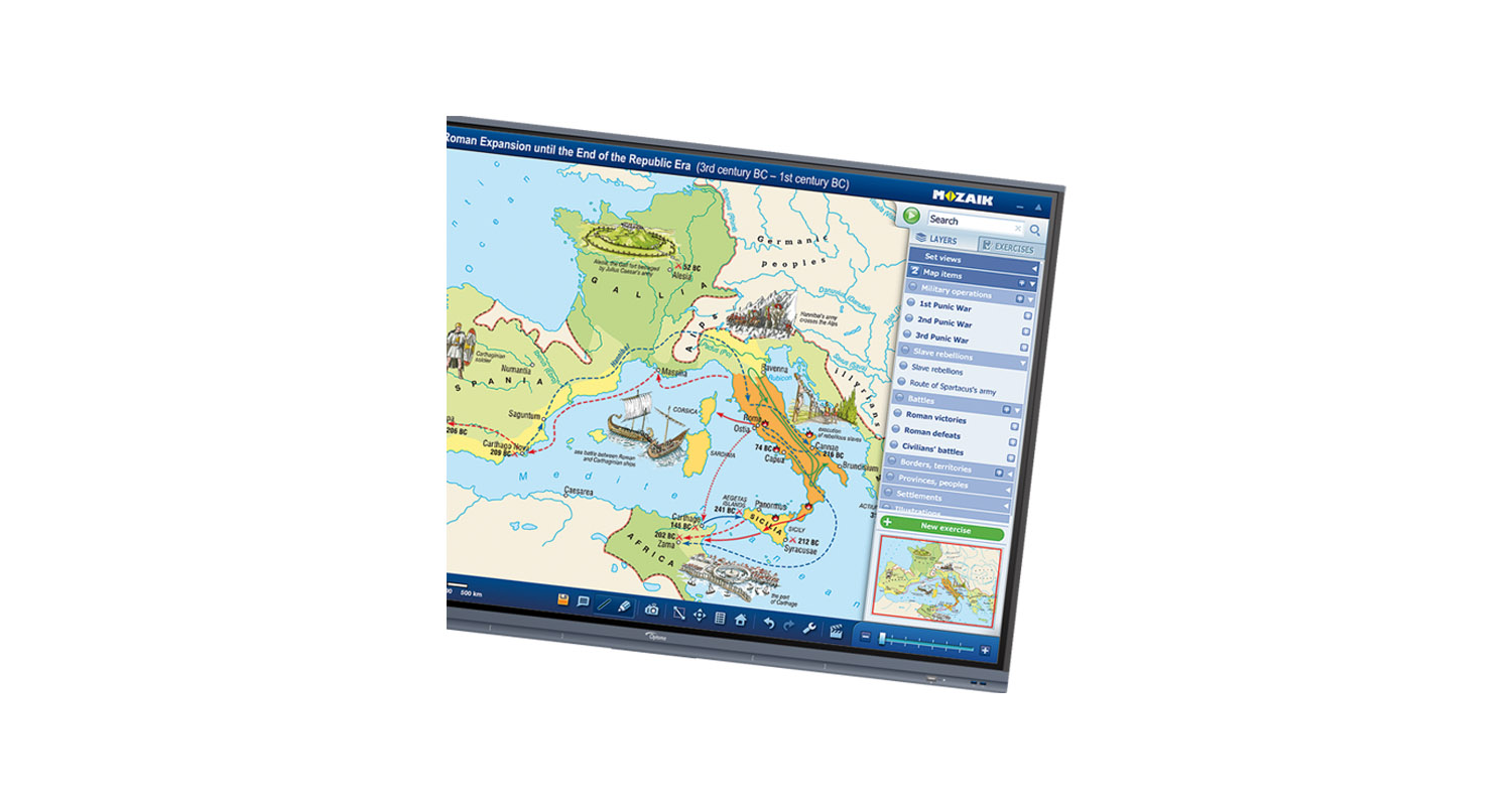 mozaMap, coğrafya ve tarih öğretmenleri için mevcut araç yelpazesini genişleten etkileşimli atlaslar sunar. Çeşitli harita türlerini ve içerdikleri öğeleri kullanarak ve özelleştirerek derslerinizi hazırlayın ve etkili bir şekilde öğretim yapın.